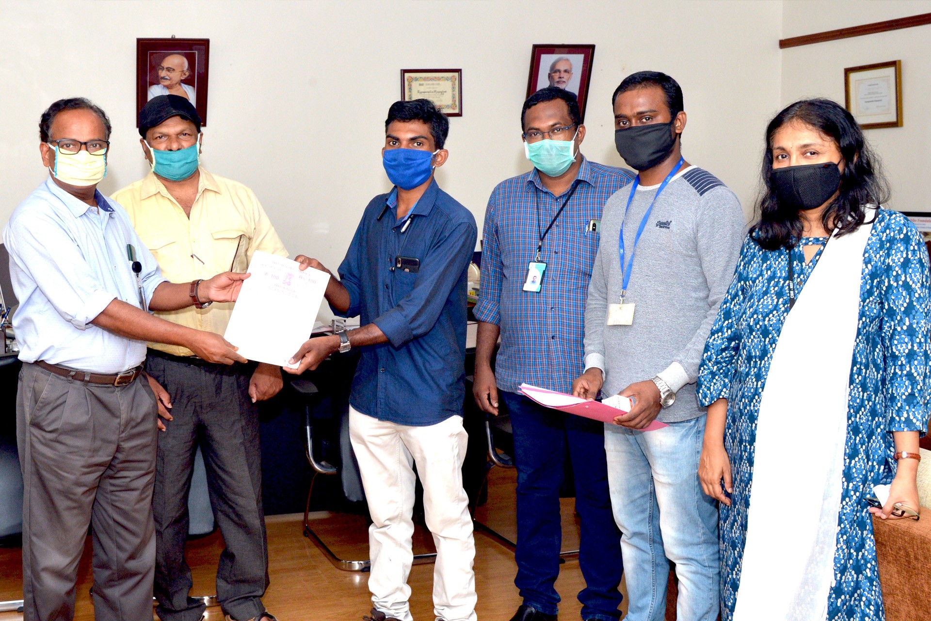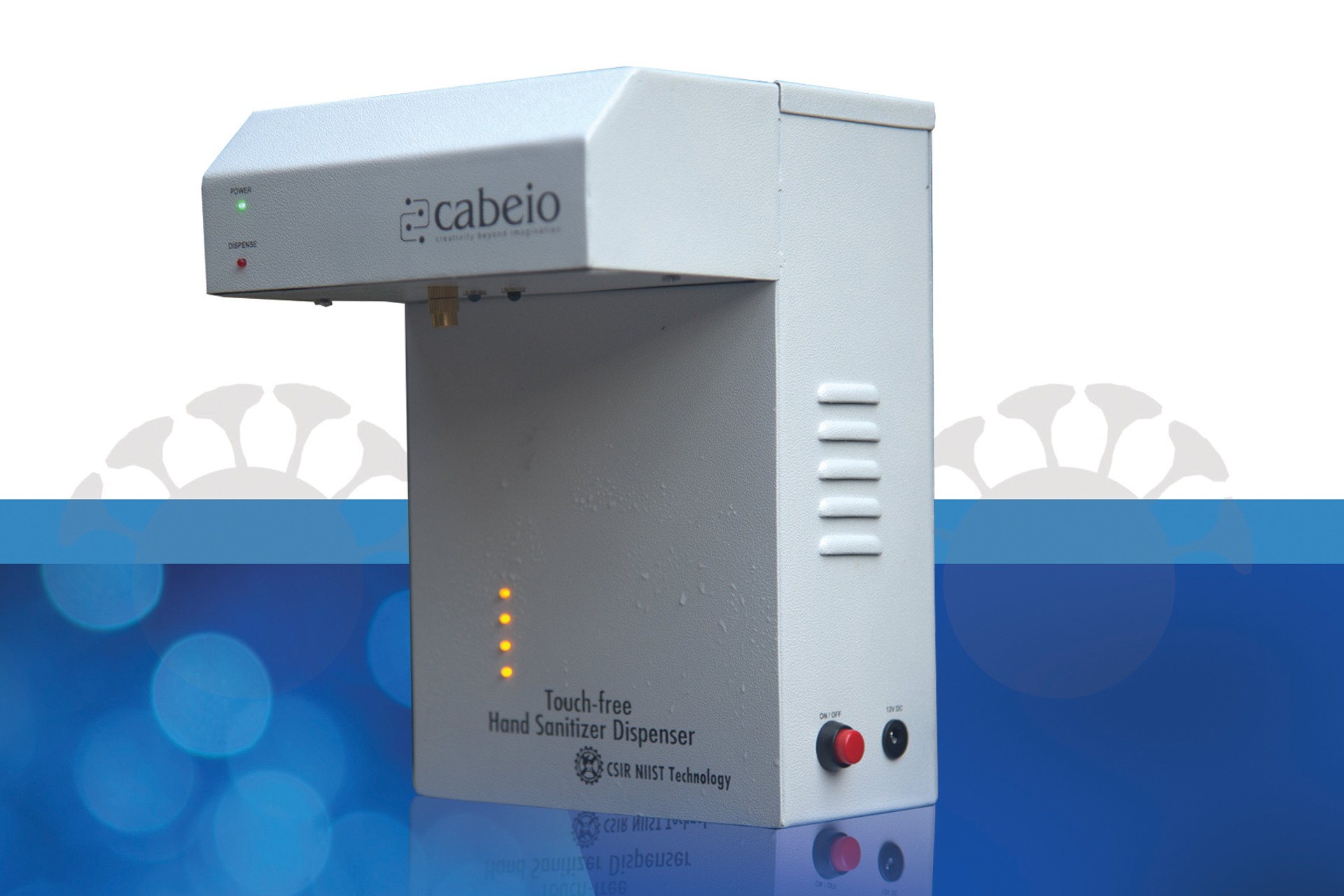 CSIR at its National Institute for Interdisciplinary Science & Technology, Thiruvananthapuram has developed a wall mountable sensor based device for dispensing the sanitizer which is devoid of any physical contacts. The KNOWHOW of this Sanitizer Dispenser was transferred to Cabeio Technologies, by the Director of CSIR NIIST.